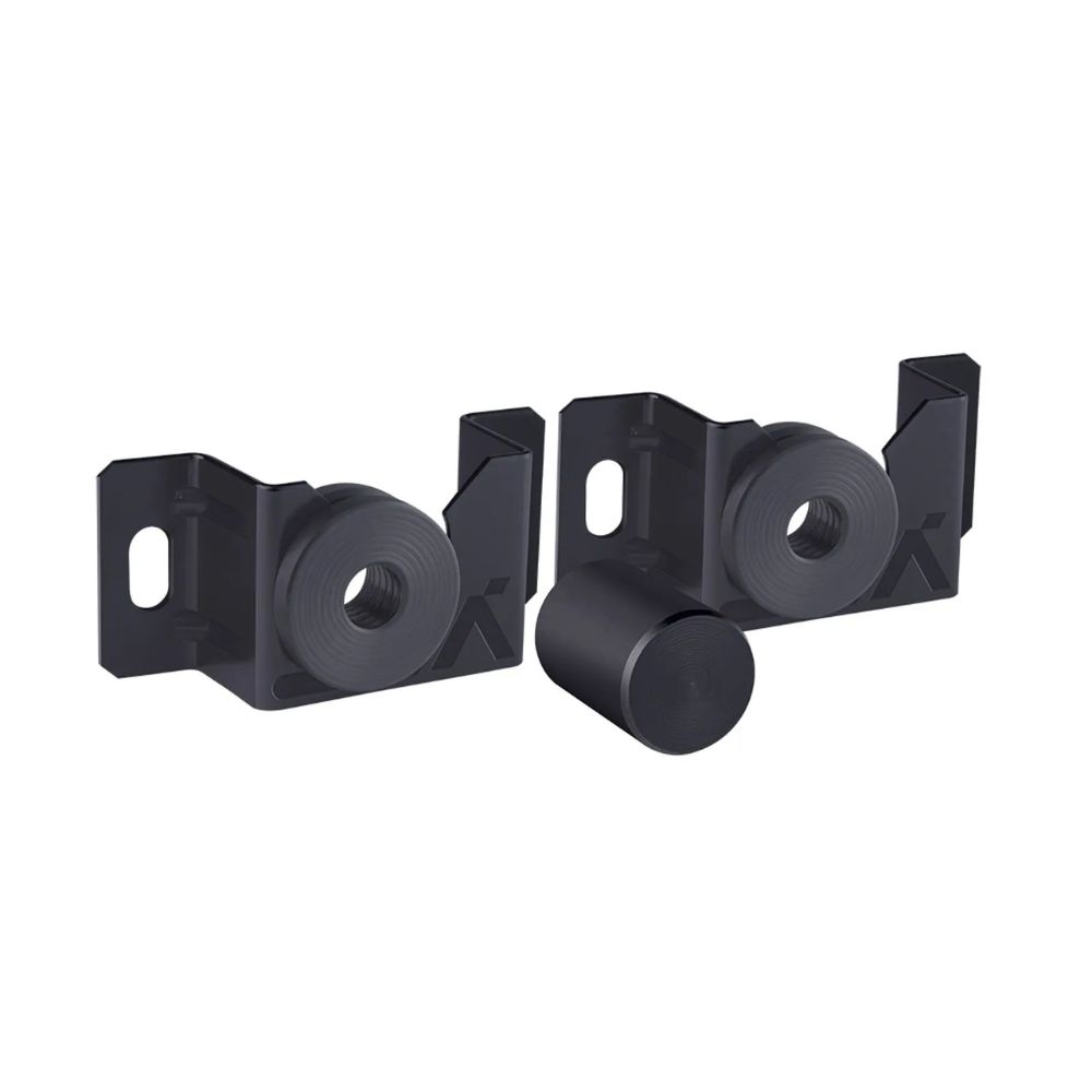 O suporte acompanha alguns tipos de parafusos, buchas e arruelas para auxiliar a sua instalação, pra alguns tipos de superfícies.